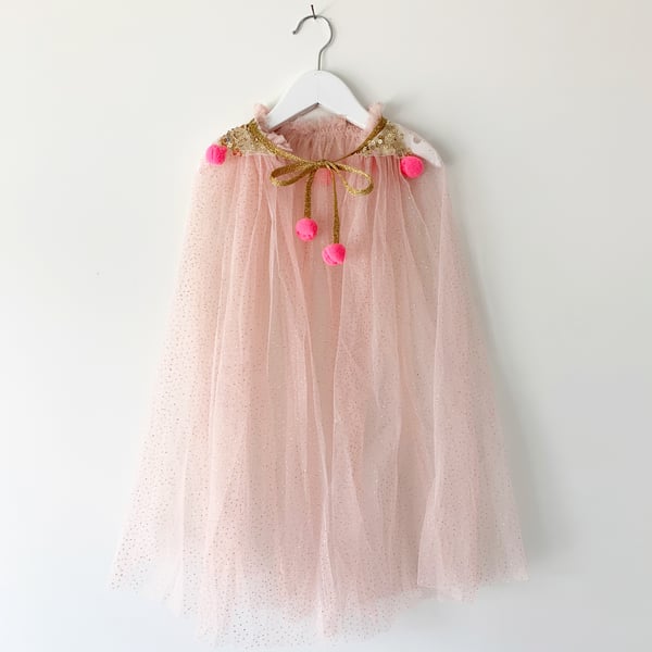 Valentine’s Magic Cape - Hearts with Silver Collar and Pink Poms